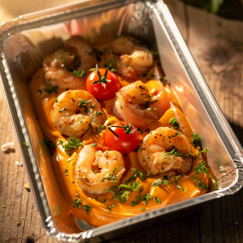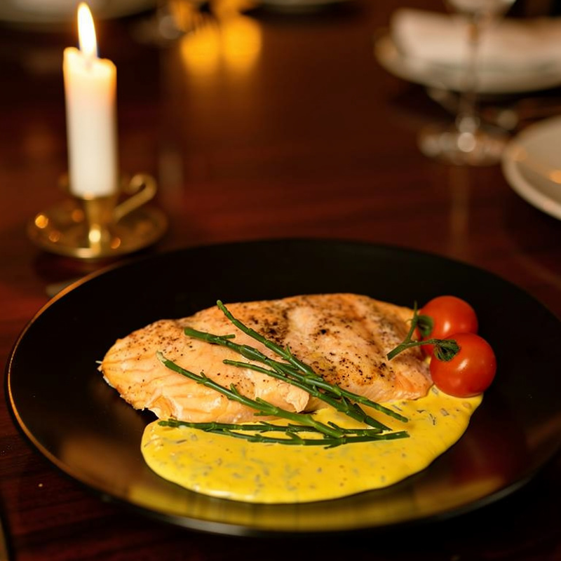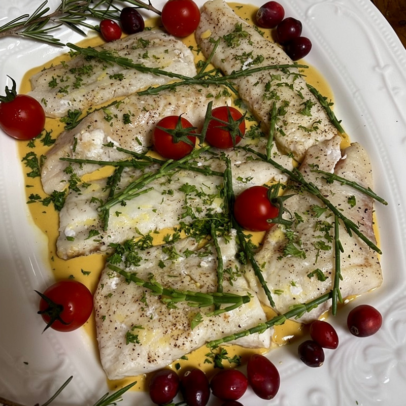 Vis en VegetarischZalm, scampi, aardappel, ...