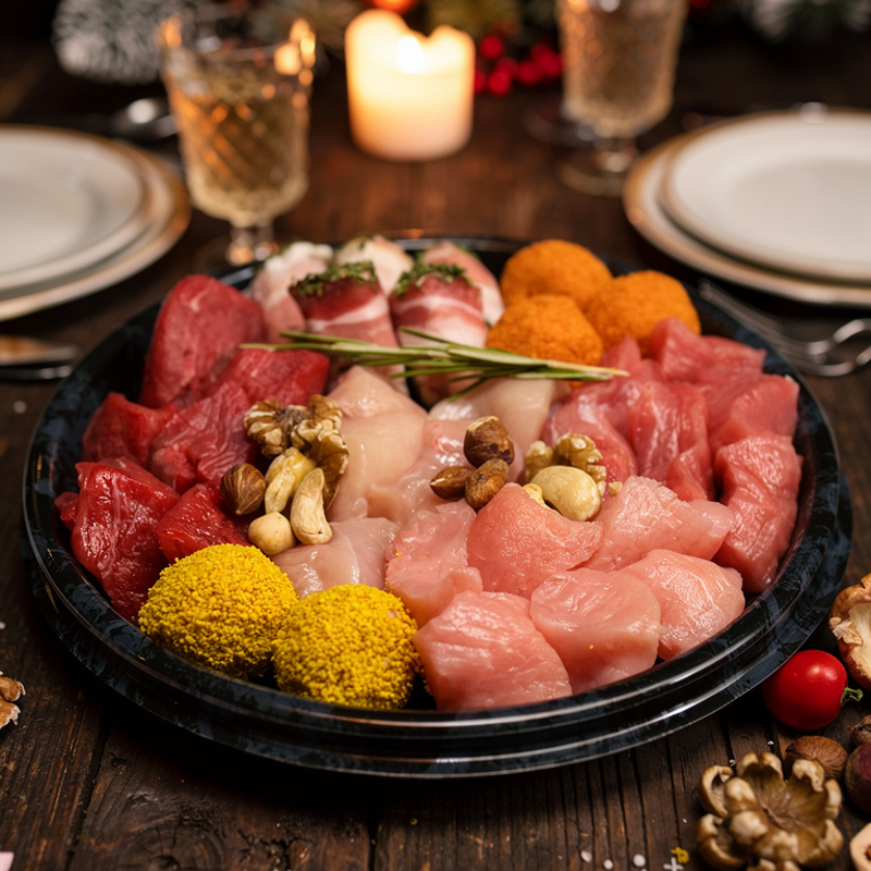 Varkensfilet - kipfilet - rundsfilet - kalfsfilet - snitsel - spekvinkje - chipolata - mini saté - hamburgertje