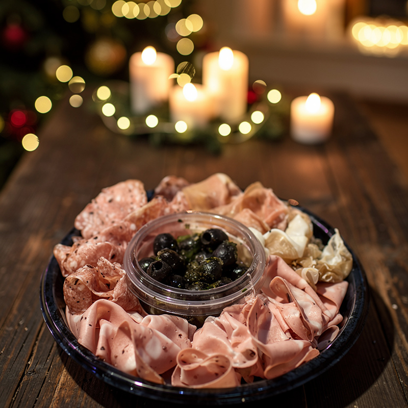 Truffelsalami, Italiaanse ham met truffel, Mortadella met truffel, zwarte olijfjes