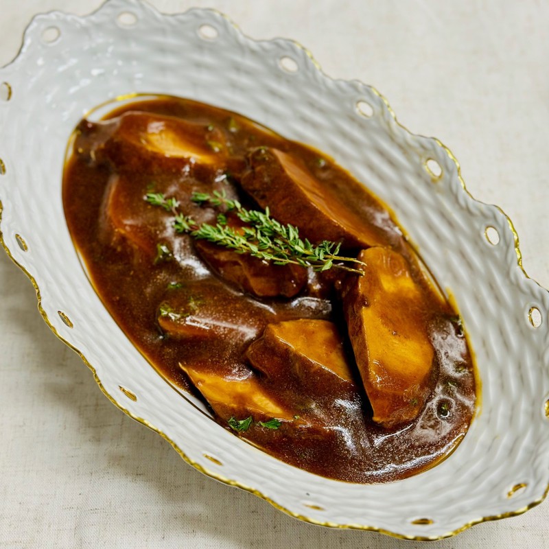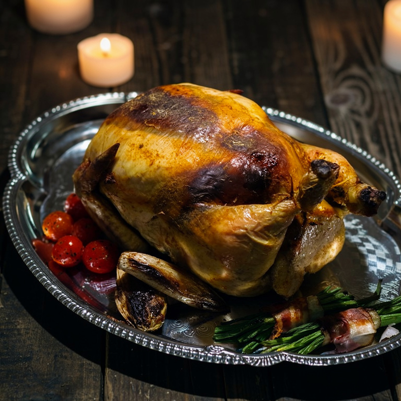 Deze kalkoen wordt door ons ovenklaar gemaakt en is ruim voldoende voor 6 tot 8 personen. De bijhorende warme saus kan je kiezen uit ons assortiment en is inbegrepen in de prijs.