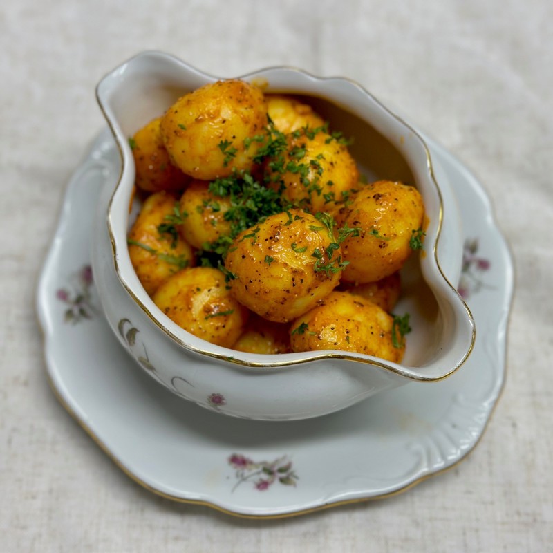 Vis en VegetarischZalm, scampi, aardappel, ...