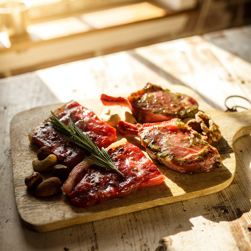 Truffelsalami, Italiaanse ham met truffel, Mortadella met truffel, zwarte olijfjes